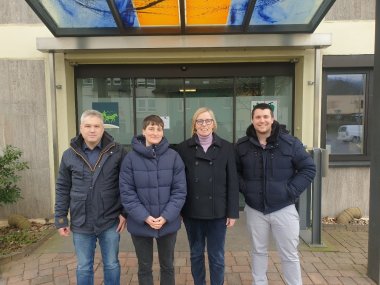 v.l.n.r. Energieberater Christian Schmidt, Kooperationsmanagerin Carmen Strüh, Bürgermeisterin Christiane Horsch und Klimaschutzmanager Florian Merten