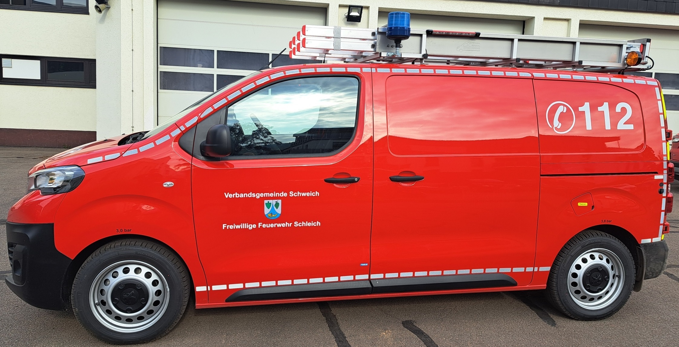 Anfang Juni 2024 konnte das neue Fahrzeug für die Feuerwehr Schleich bei der Firma Mandl in Dreis-Brück in Empfang genommen werden. Der Gerätewagen-Tragkraftspritze (GW-TS) ersetzt einen Tragkraftspritzenanhänger, der bisher in der Ortsgemeinde Schleich stationiert war. Insgesamt kostete das Fahrzeug ca. 74.000 €. Das Land Rheinland-Pfalz hat eine Fördersumme in Höhe von 16.000 € in Aussicht gestellt.