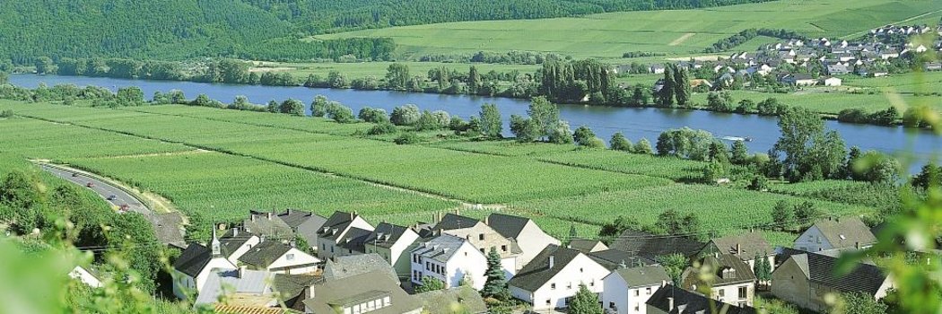 Longen - Auch der kleinste Ort der Roemischen Weinstrasse mit seinen knapp 100 Einwohnern lädt zum Verweilen und zum Studium seiner Geschichte ein. Die luxemburger Abtei Echternach erhielt im Jahre 770 Besitzungen in "Longun" zugewiesen. Von ihr erwarb die Abtei Prüm im Jahre 830 den Ort - nun "Longin" genannt - und diese verkaufte im Jahre 1343 das Dörfchen für 350 Schildgulden und 100 Pfund Trierische Pfennige an Erzbischof Balduin von Trier. Neben der Kapelle aus dem 16. Jahrhundert wurde 1995 ein hübscher Brunnen eingeweiht. Ein wesentlich älterer Brunnen, der "Höpperbur", findet sich im Weinberg des "Zellerberg". Der Wein und der Brunnen stehen im Mittelpunkt des kleinen, urigen Weinfestes am 1. Juni-Wochenende. Vom 416 m hohen Mehringer Berg hat der Wanderer eine umfassende Fernsicht über das Moseltal bis zu den Kirchtürmen Triers und den Hunsrück bis zum Erbeskopf.